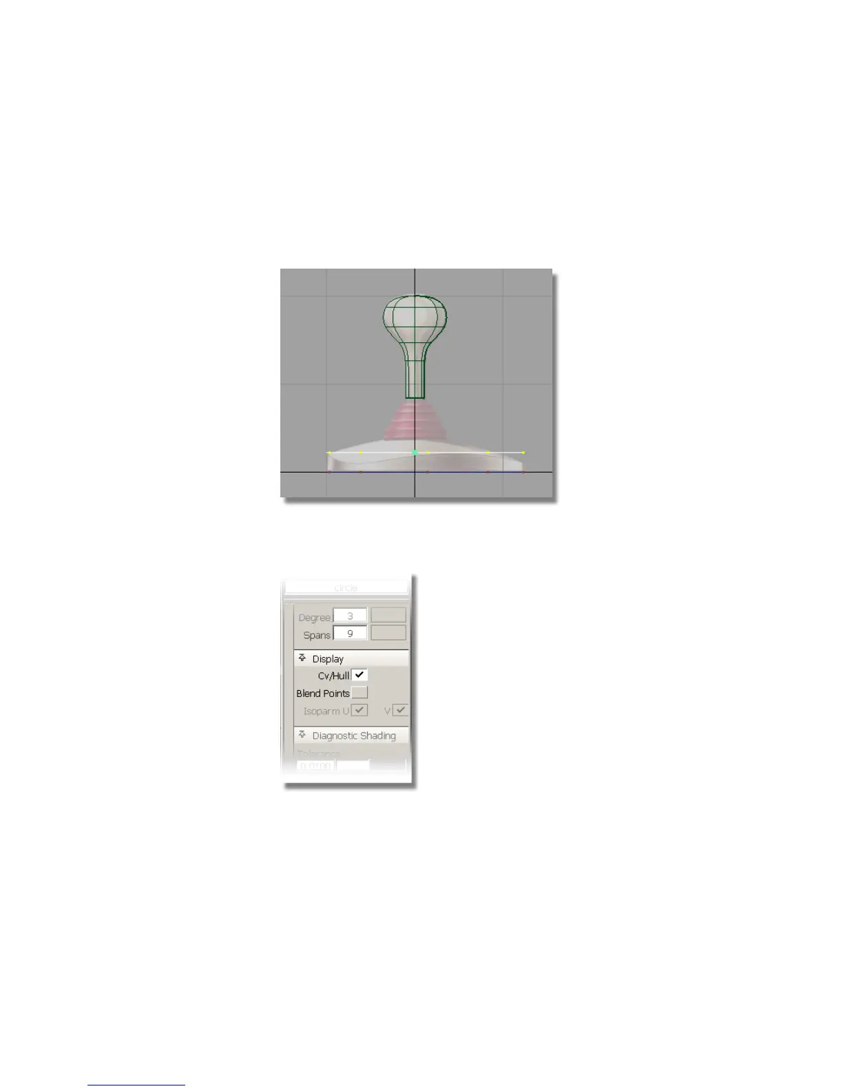 6 With the curve still selected, click the CV/Hull check box in the Control