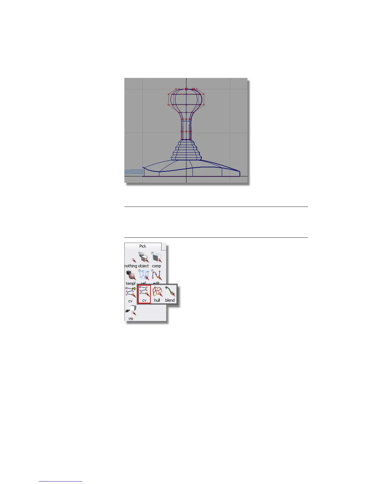 the mouse to the CV icon and release to select the Pick Point Types > CV