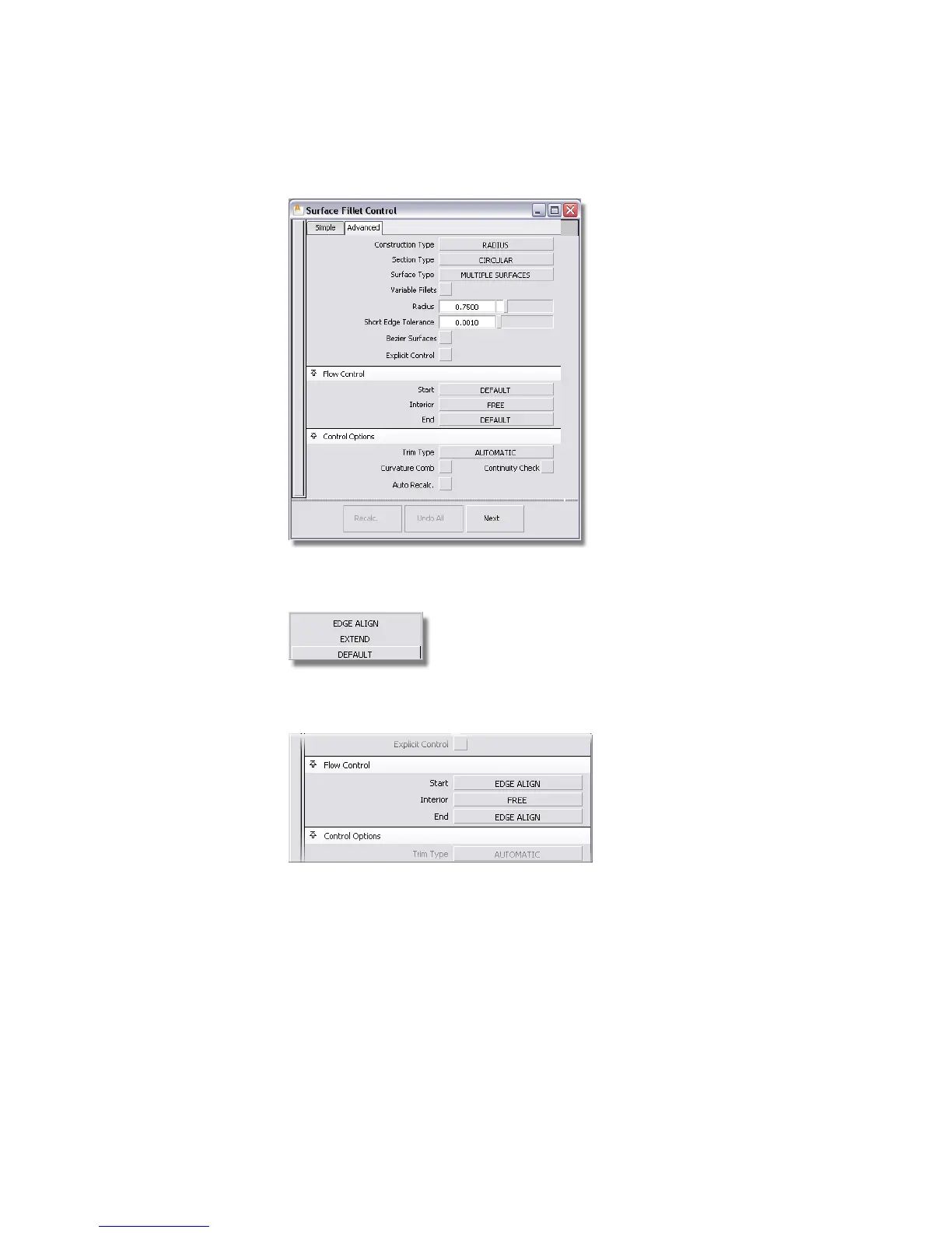 Interior, and End of the fillet surface.