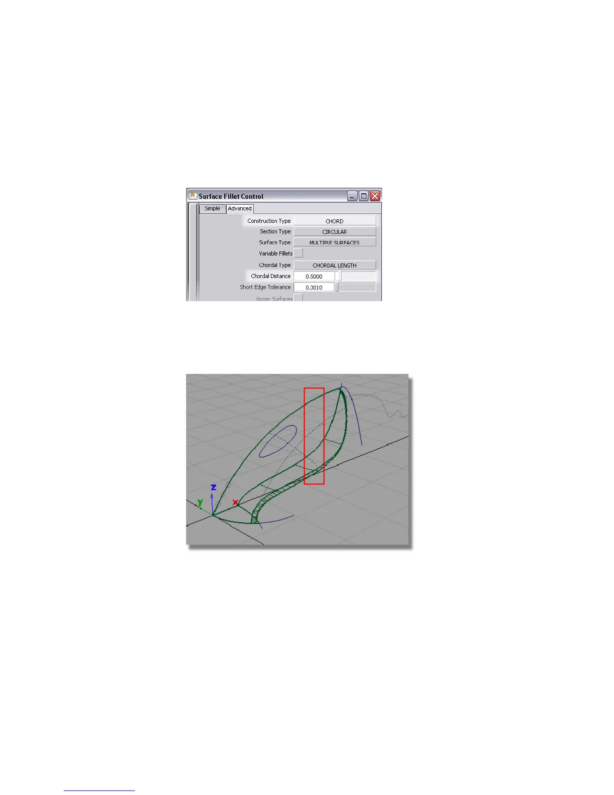 4 Only a small fillet is required around the nozzle, so set Chordal Distance