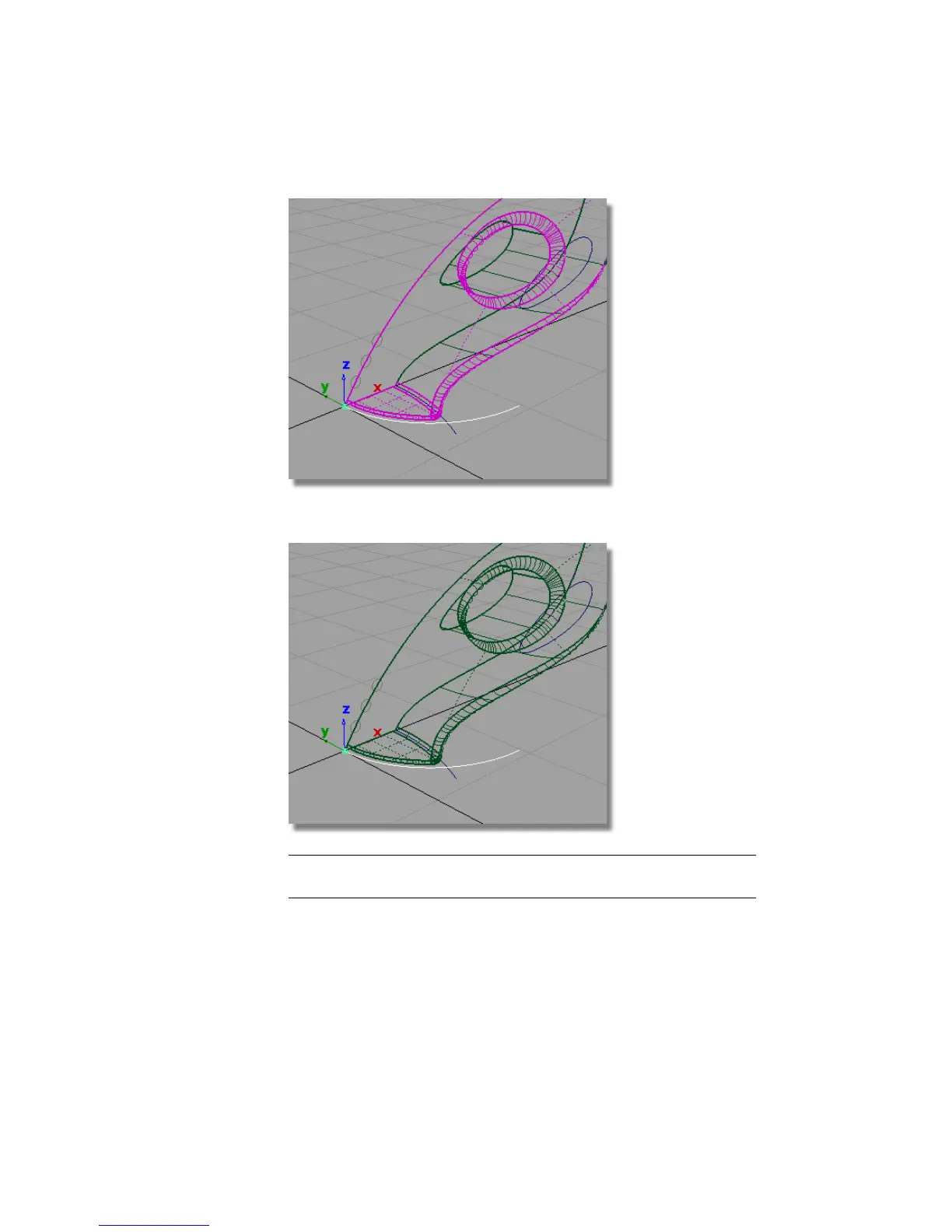 NOTE The surfaces are no longer highlighted in pink, as the new curve is a