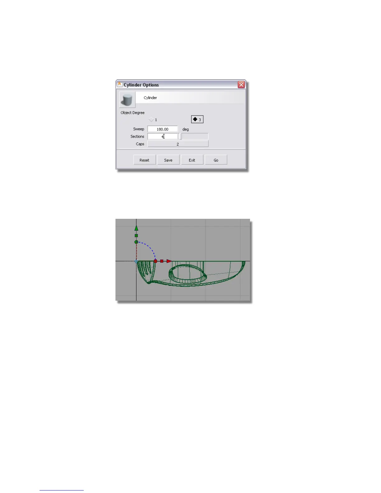 Click the Go button to create the half cylinder.