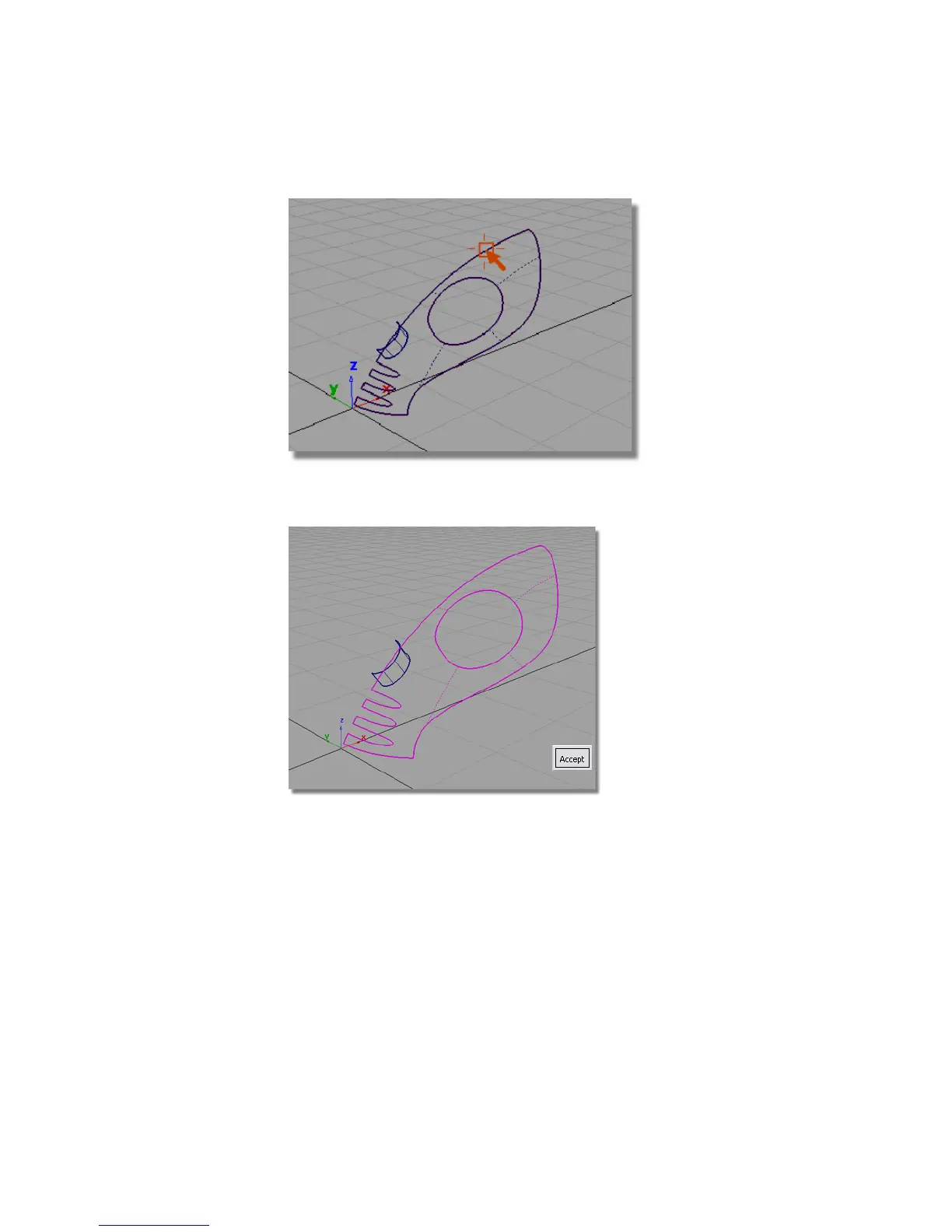 The surface is selected and highlighted in pink, and an Accept button