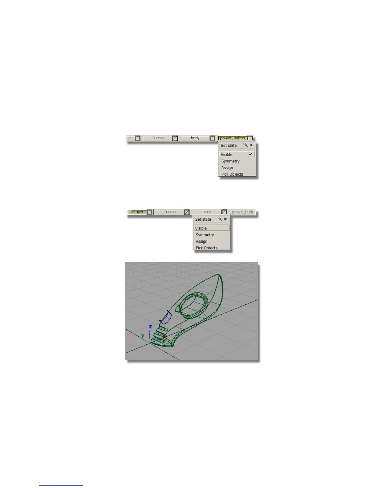 the pull-down menu. Choose Visible to make the power_button surfaces