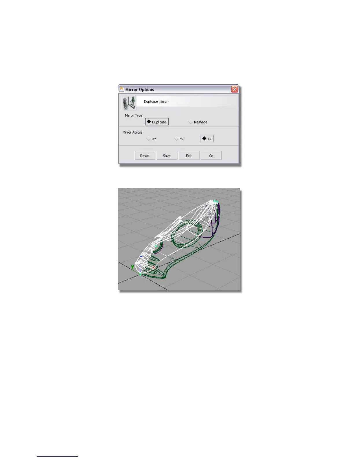 4 Choose XZ as the Mirror Across plane, and click Go.