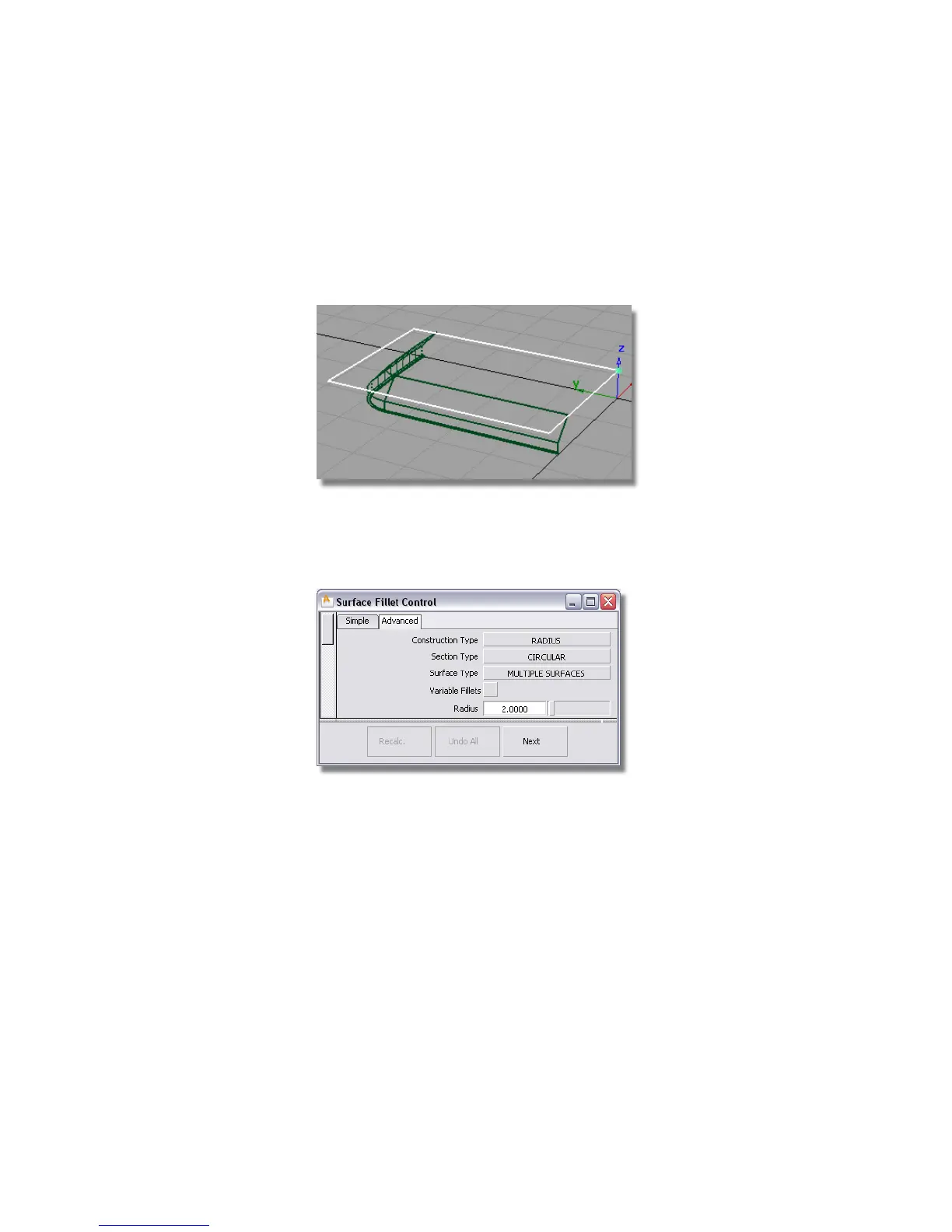 2 Choose Surfaces > Surface Fillet and double-click the icon to open the