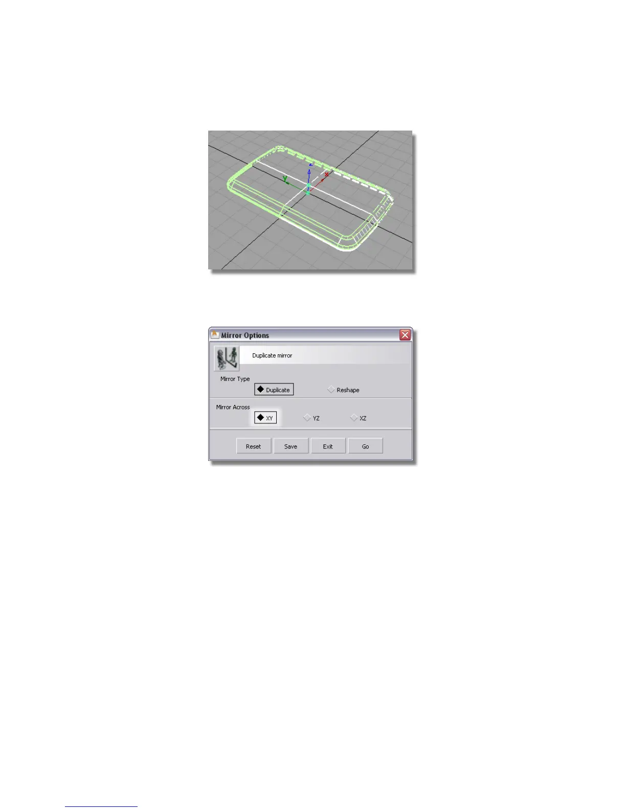 3 Choose Edit > Duplicate > Mirror to open the option window.