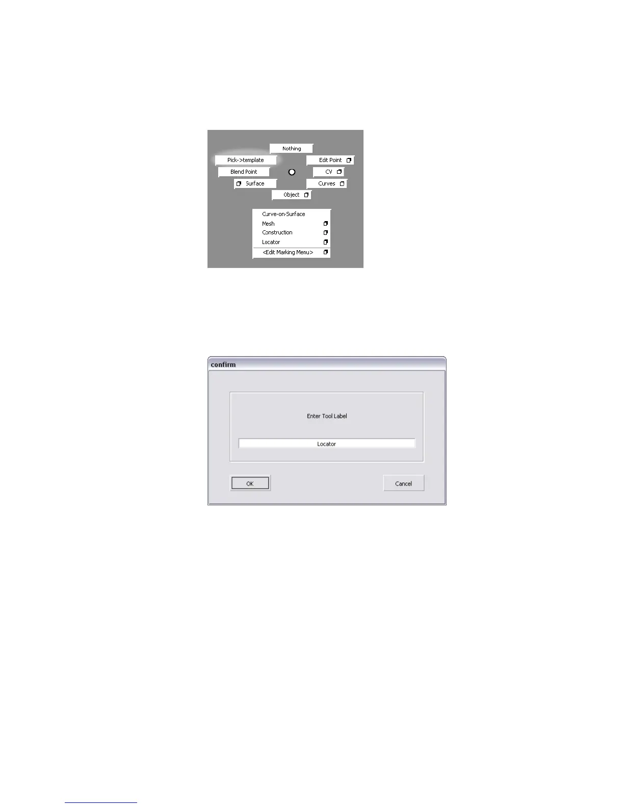 6 In the MarkingMenu shelf window, hold down the Ctrl (Windows) or