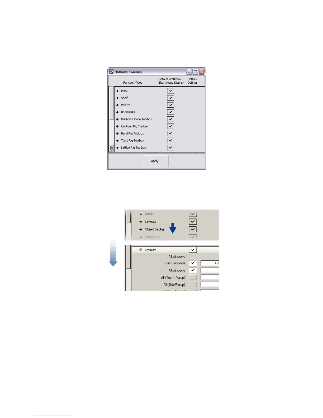 ■ Alias’ s option windows use a hierarchy similar to that of the File Lister: