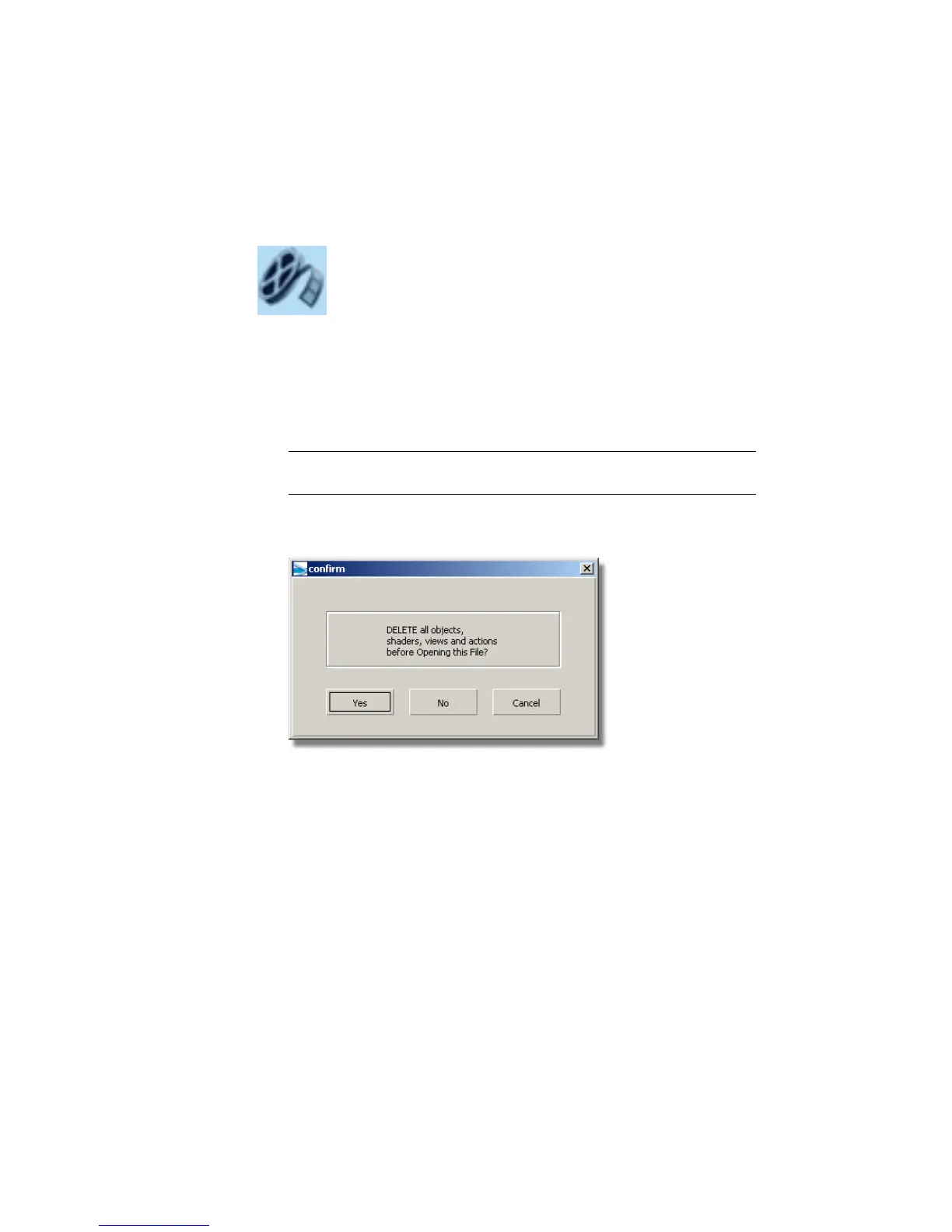 2 A dialog box appears, asking if you want to delete all objects, shaders,