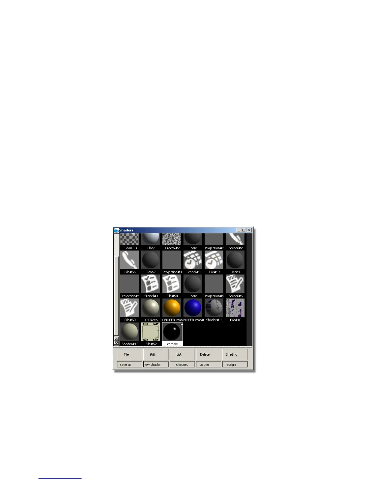 1 Choose Render > Multi-lister > Shaders. A number of shaders have been