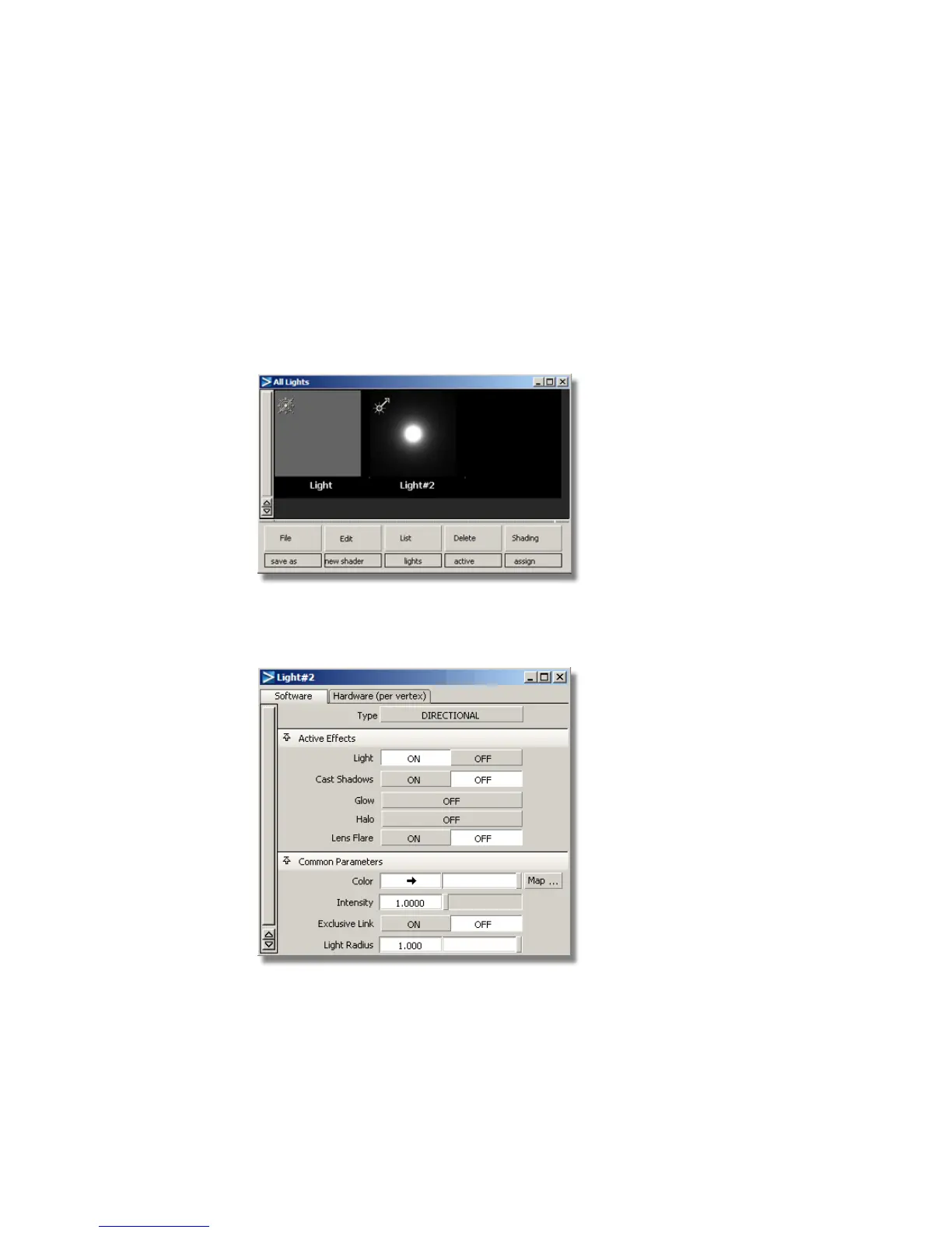 When you choose WindowDisplay > Hardware Shade , a set of default lights