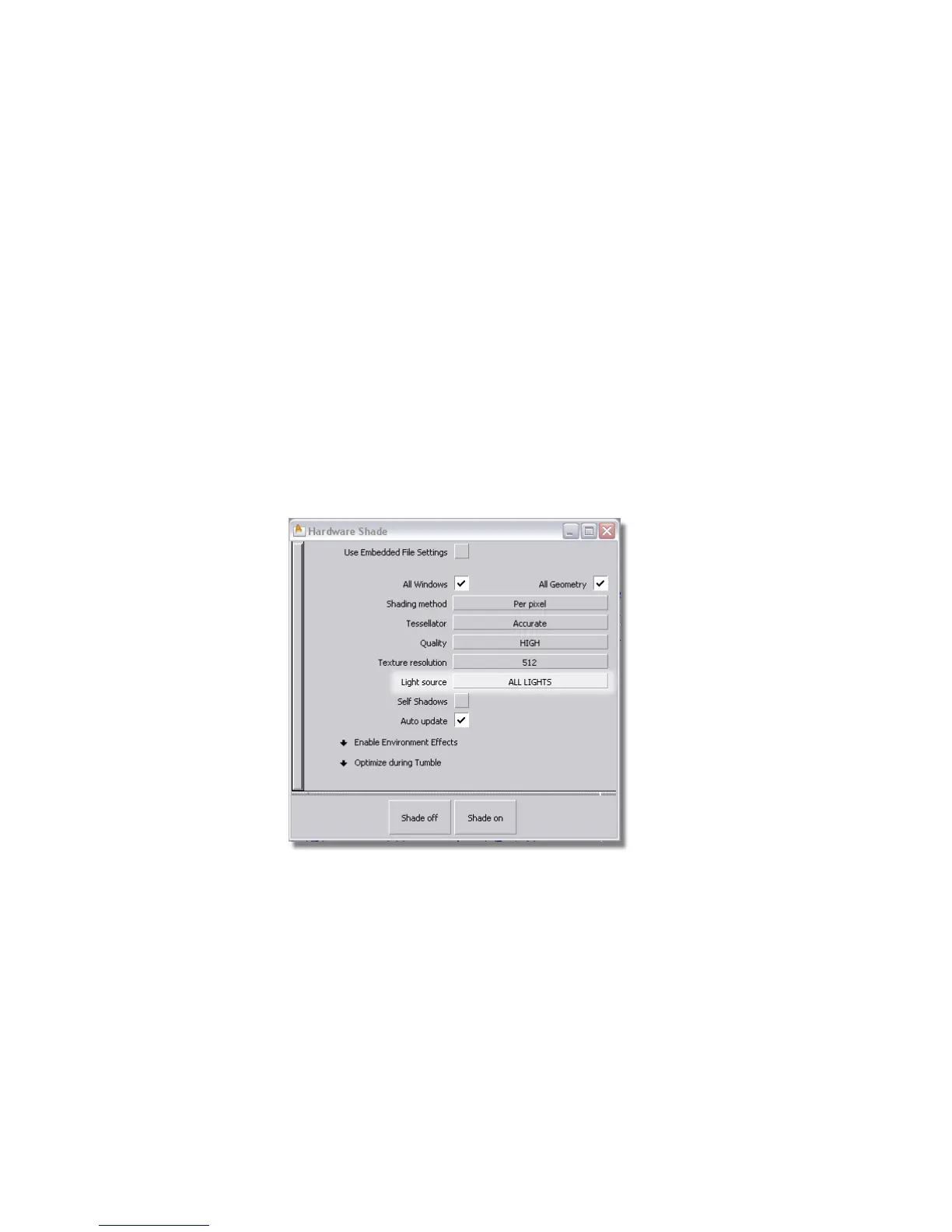 ➤ Choose WindowDisplay > Hardware Shade ❒ to open the option window.