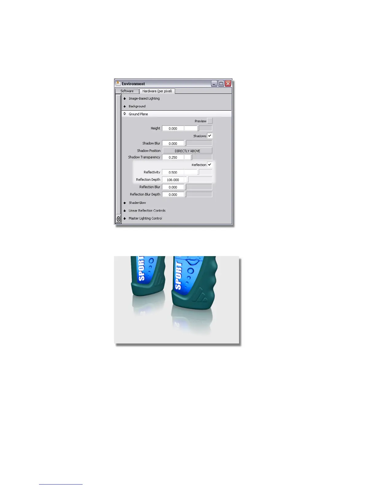 2 Modify the Reflectivity and Reflection Depth options to change the