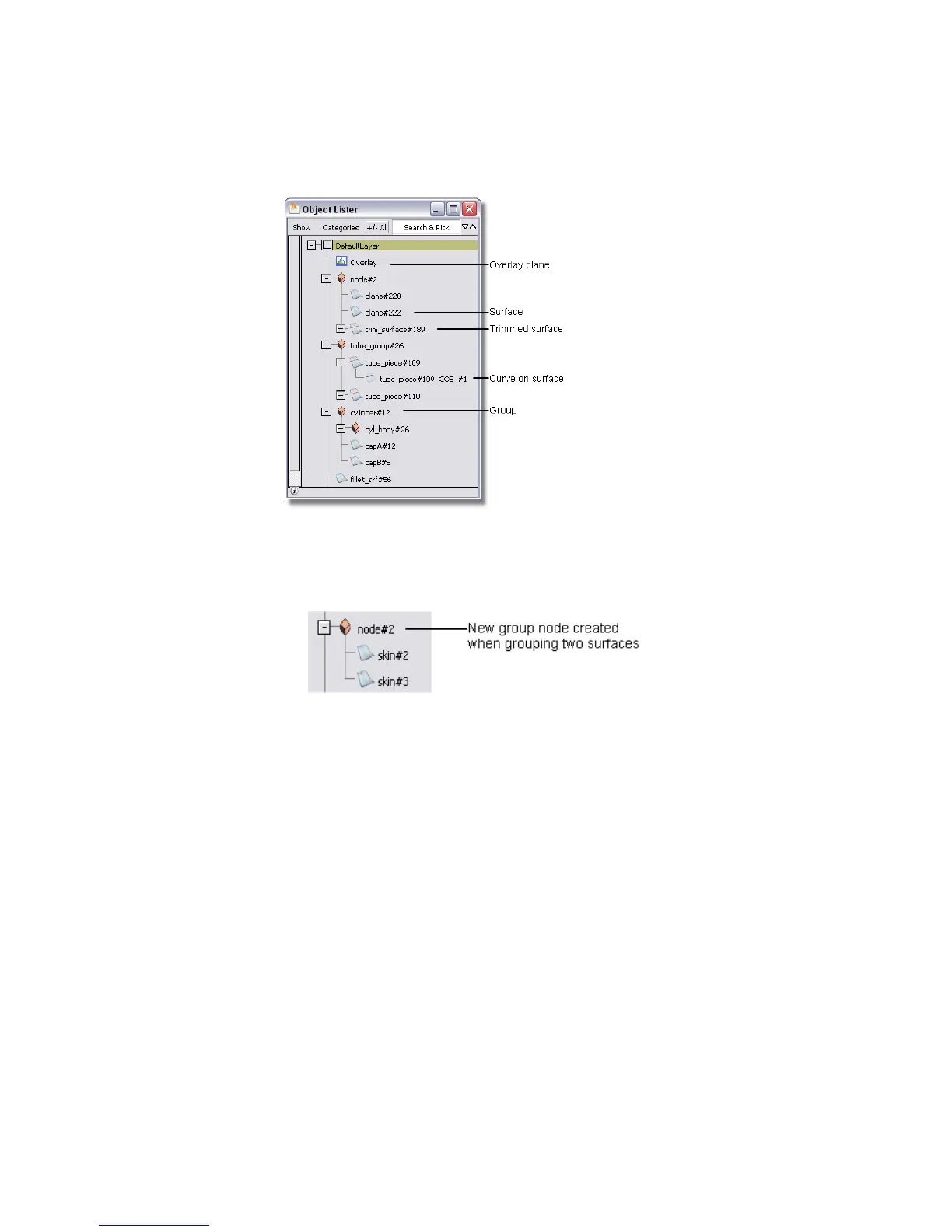 ■ Grouped: you can group several objects. In the Object Lister, this is