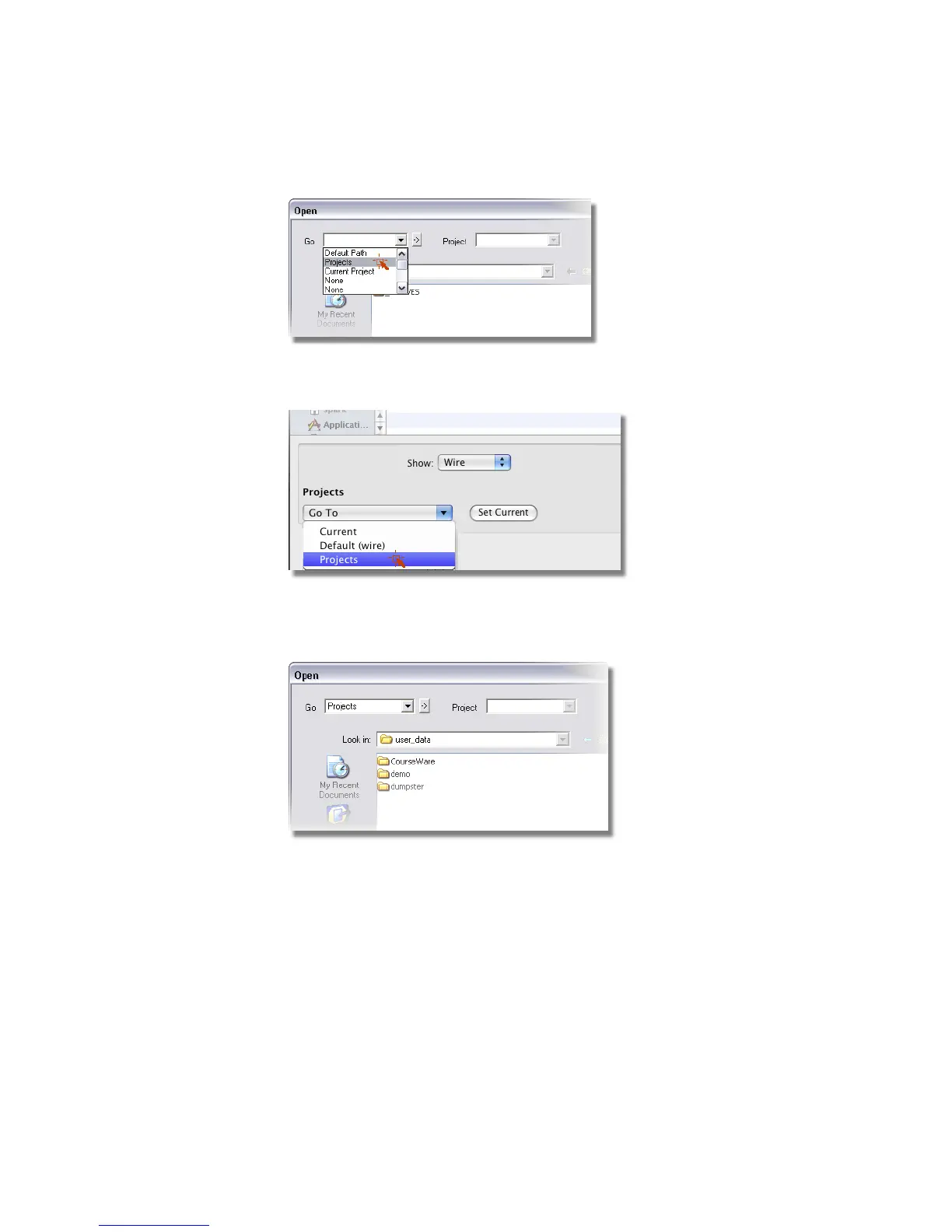 ■ On Windows, click the CourseWare directory and choose Project >