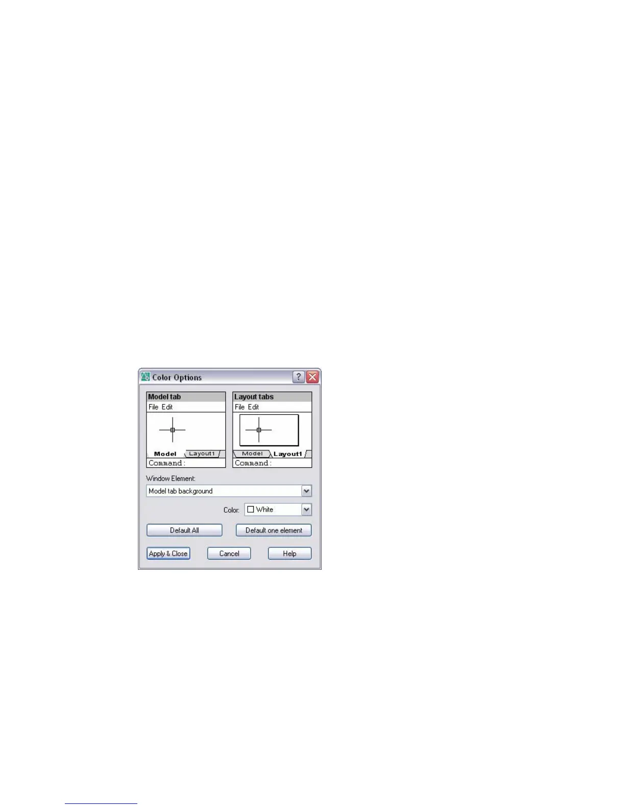 the color of a Model tab window element, click the specific element in the