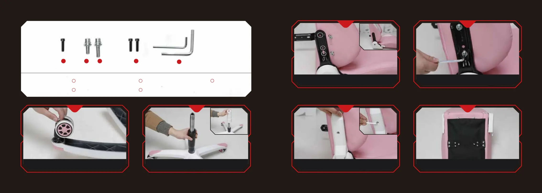 (Note: The four backrest screws are aligned with the holes in sequence and