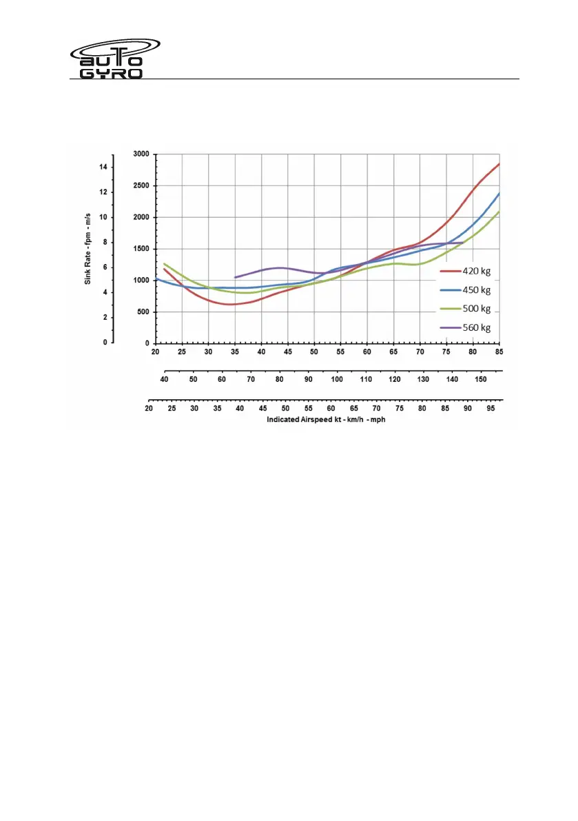 The sink rate depending on airspeed with the engine in idle is plotted in the following