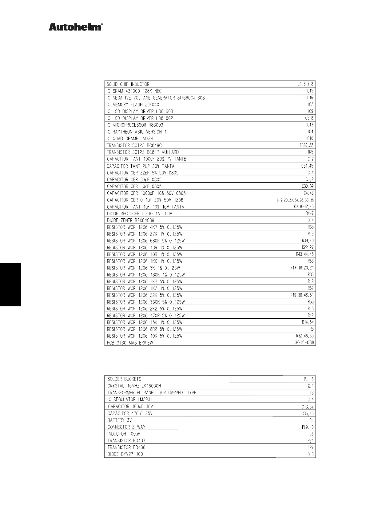 AUTOHELM Masterview ST80 - PCB Component Lists