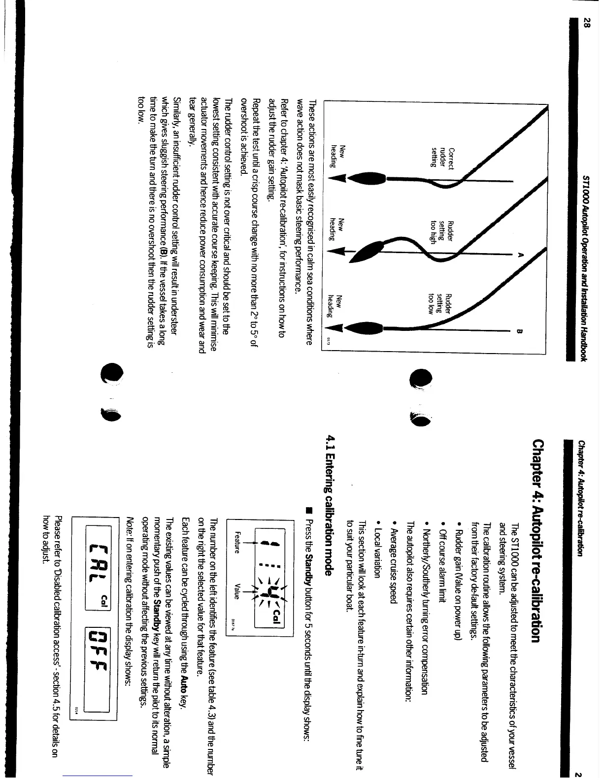 AUTOHELM ST1000 - Chapter 4: Autopilot Re-calibration; Compass Deviation Correction; Calibration Mode Access and Settings