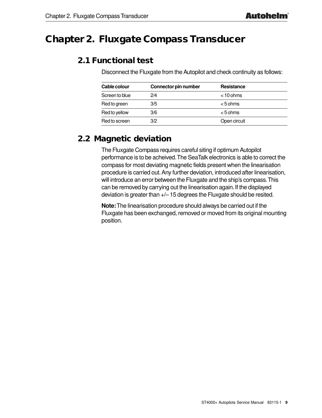 deviation is greater than +/– 15 degrees the Fluxgate should be resited.