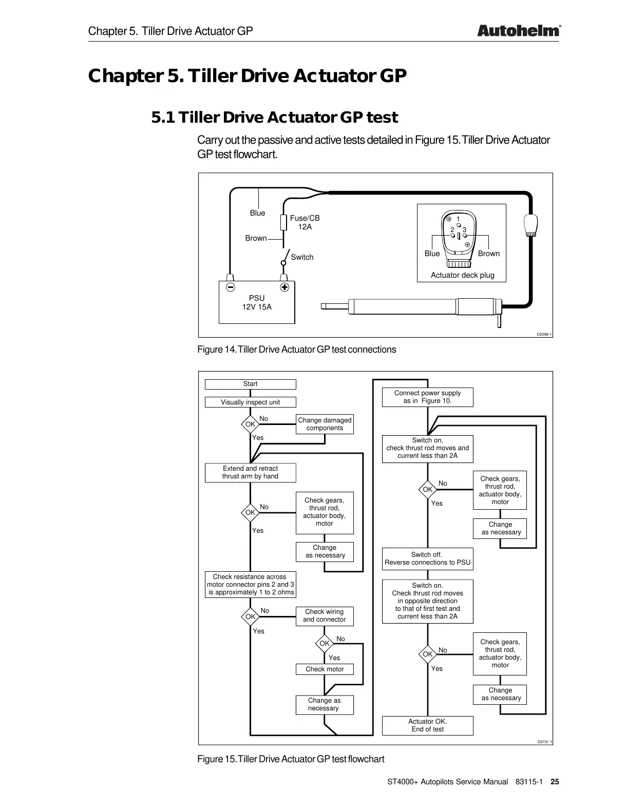 Carry out the passive and active tests detailed in Figure 15. Tiller Drive Actuator