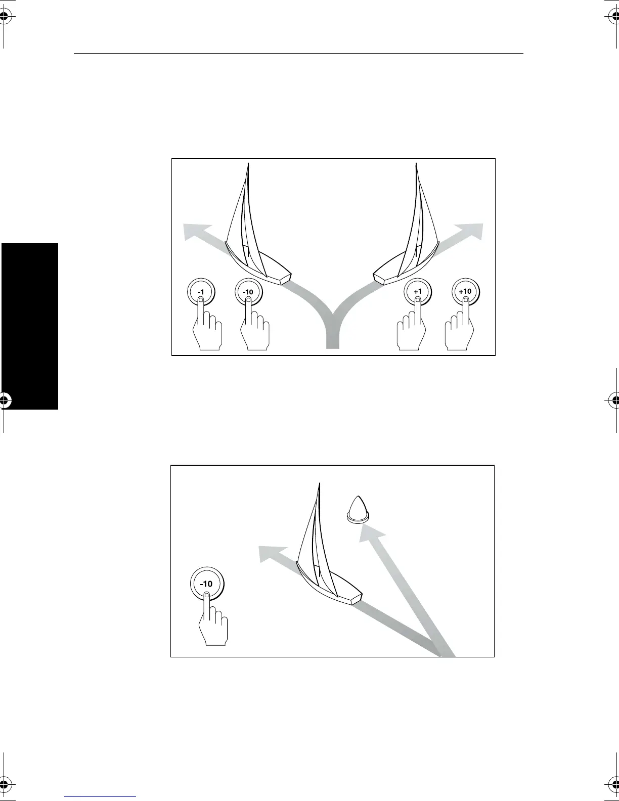 In Auto mode, use the -1 and -10 (port) and +1 and +10 (starboard)