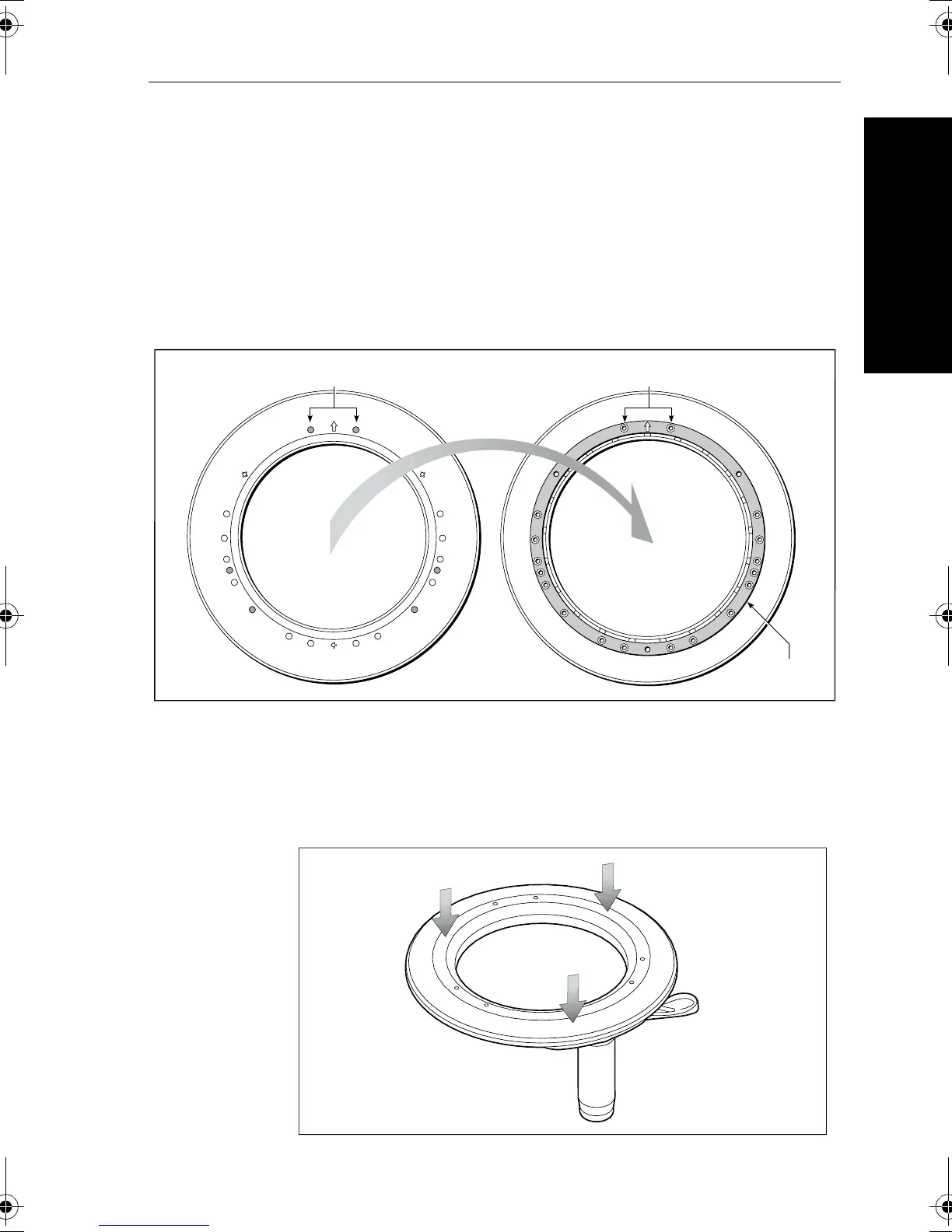 • the two pre-drilled holes (marked with an arrow) must line up