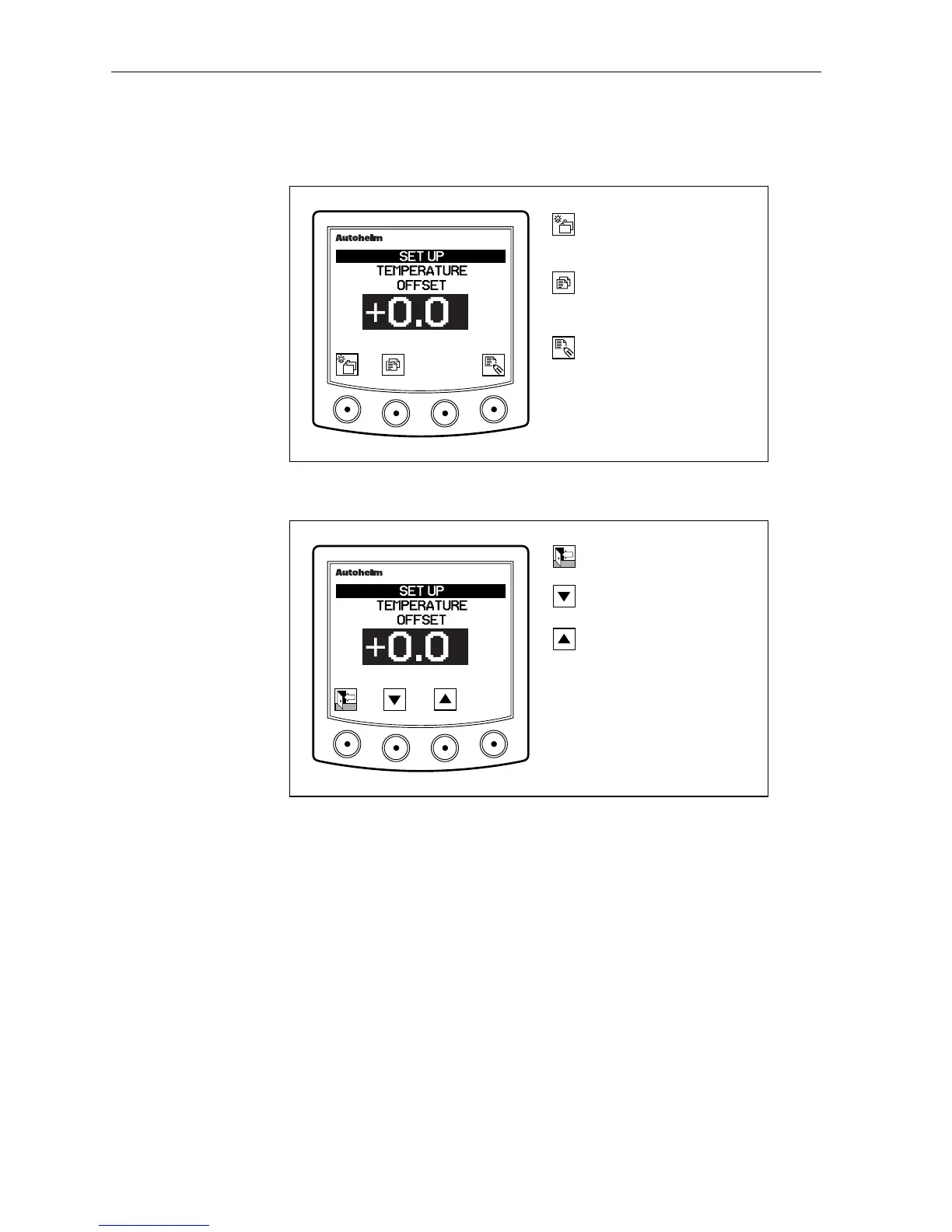 Temperature offset is selected by pressing the page key.