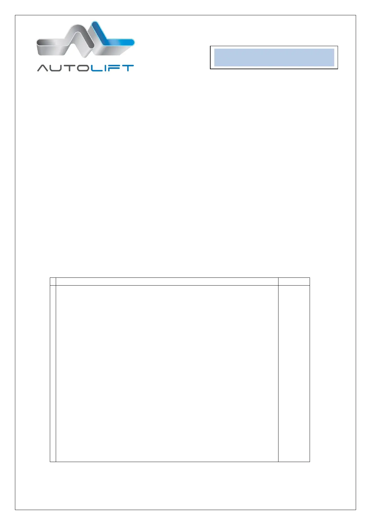 The Underflor Lift F900 was previously checked in Autolift before dispatch. After Installation in to the