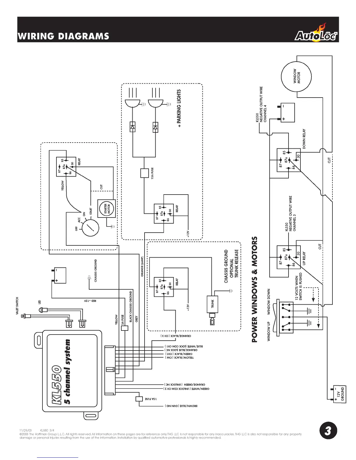 AutoLoc KL550 - System Wiring Schematics; KL550 Main Unit Connections; Power Window and Motor Control Wiring