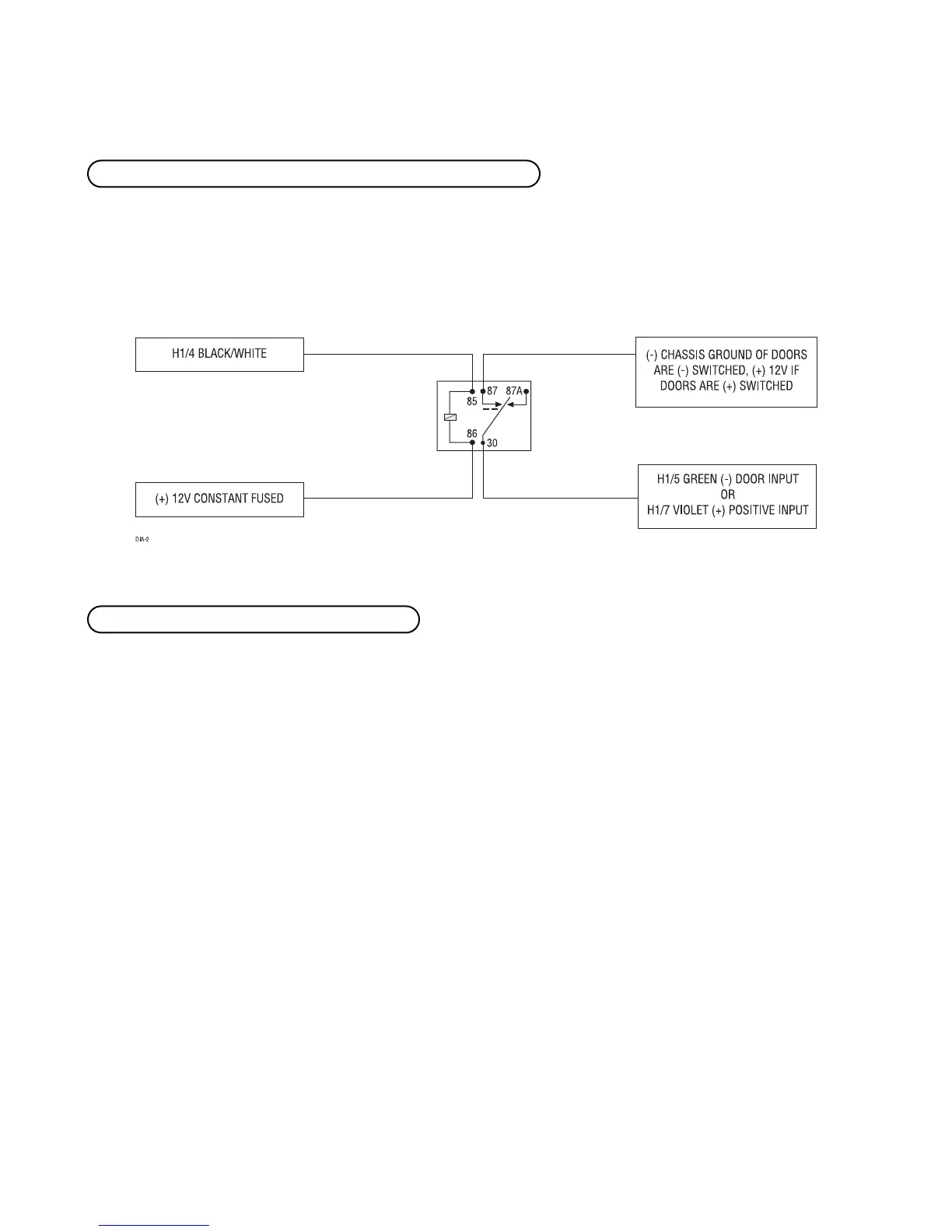 again within 15 seconds after unlocking the driver's door. The BLUE wire outputs a low current (-) pulse on the