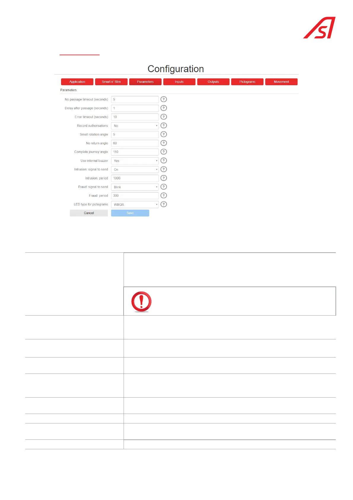 No passage timeout (seconds): Time (in seconds) after which the passage authorisation is cancelled if no passage