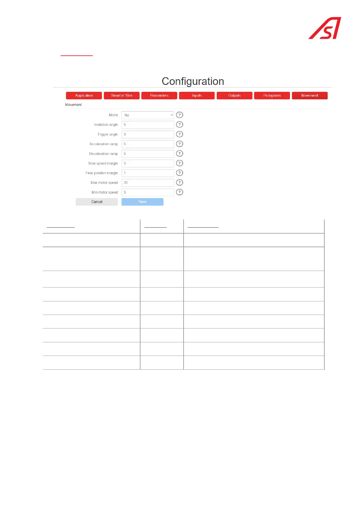 Maximum motor speed 0 to 240 Final position speed of the acceleration ramp