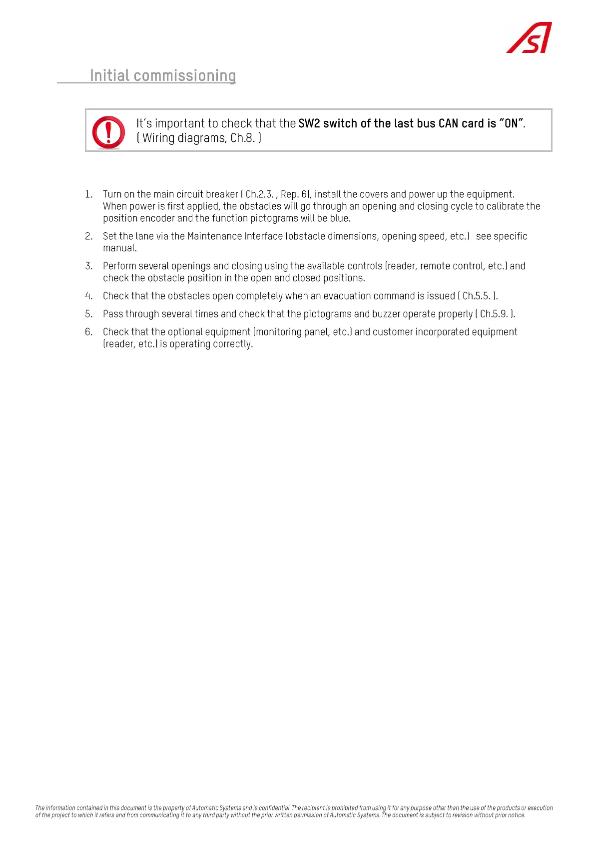 Automatic Systems SlimLane 940 - 3.6. Initial Commissioning