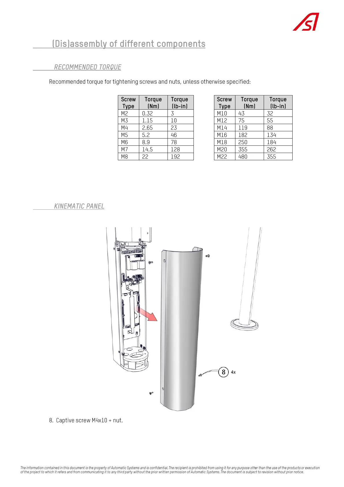 Automatic Systems SlimLane 940 - 4.5. (Dis)assembly of Different Components; 4.5.2. Kinematic Panel