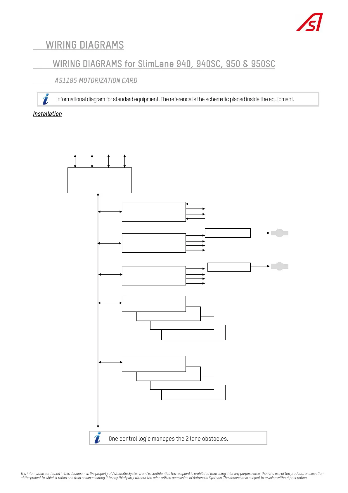 Automatic Systems SlimLane 940 - 8. Wiring Diagrams; 8.1. Wiring Diagrams for SlimLane 940, 940 SC, 950 & 950 SC; 8.1.1. AS1185 Motorization Card