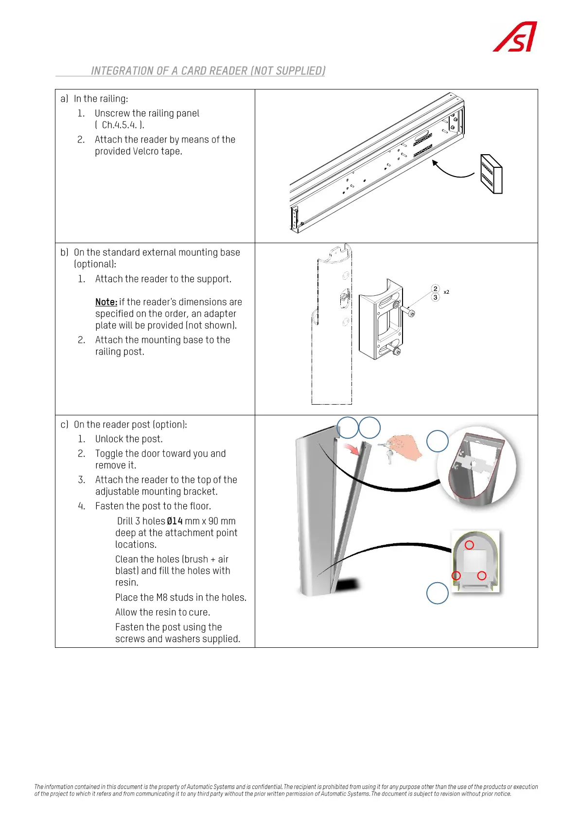 Automatic Systems SlimLane 950 SC - Integration of a Card Reader; In the Railing
