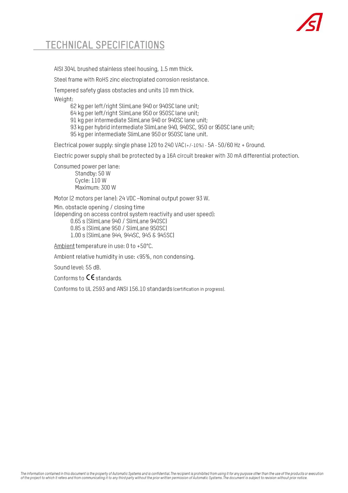 Automatic Systems SlimLane 950 SC - Technical Specifications
