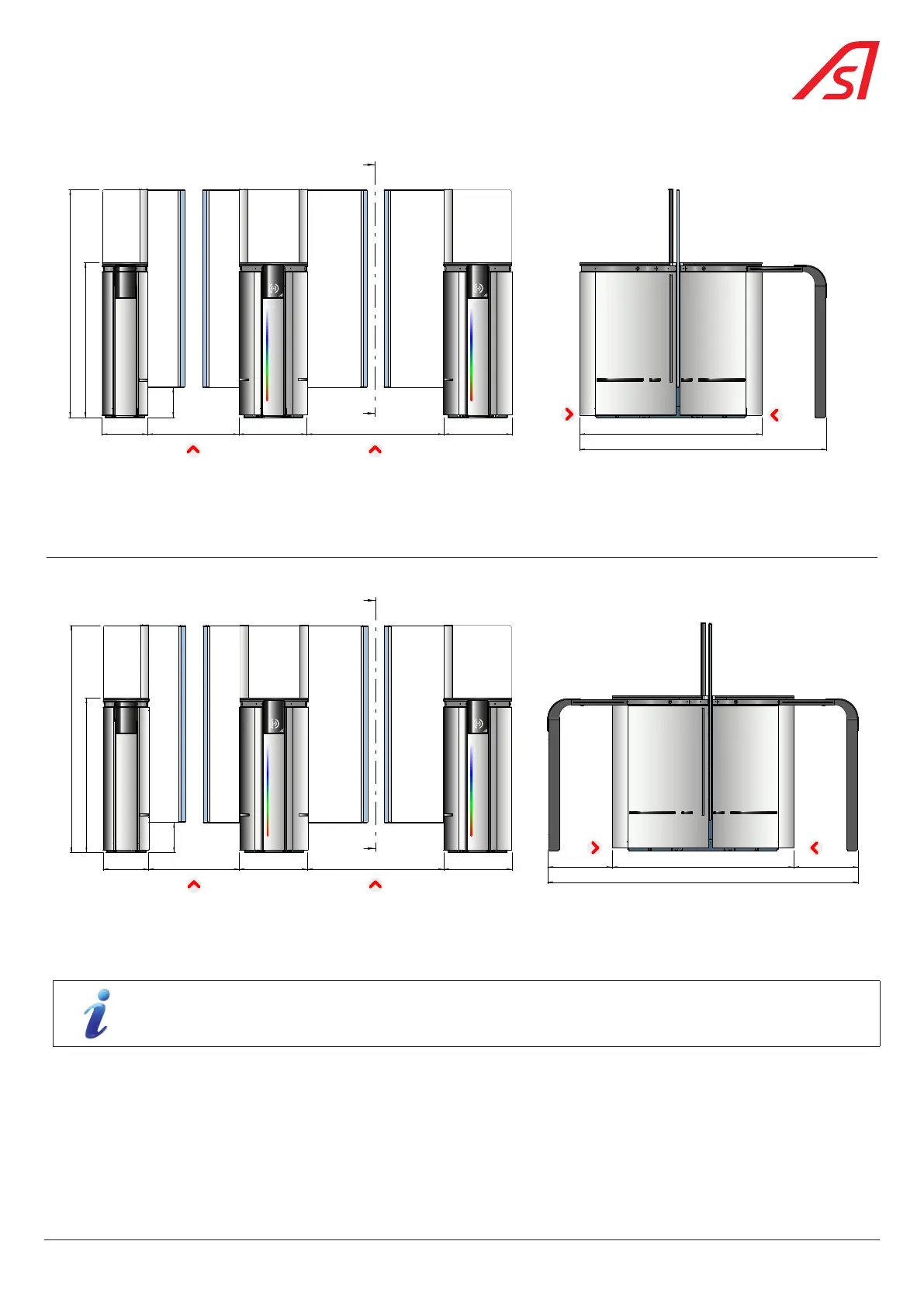 Automatic Systems SmartLane - Fig. 5 - General Dimensions (with Optional Extensions in One Direction); Fig. 6 - General Dimensions (with Optional Extensions in both Directions)