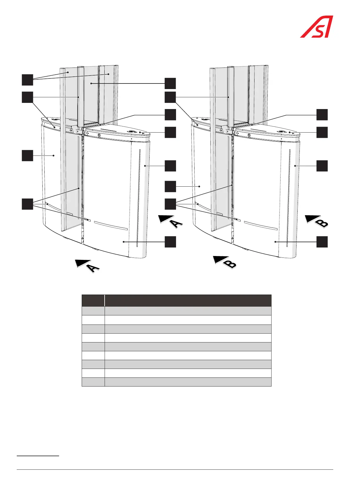 Fig. 9 - Location of the external components of the Standard SmartLane gate, intermediate