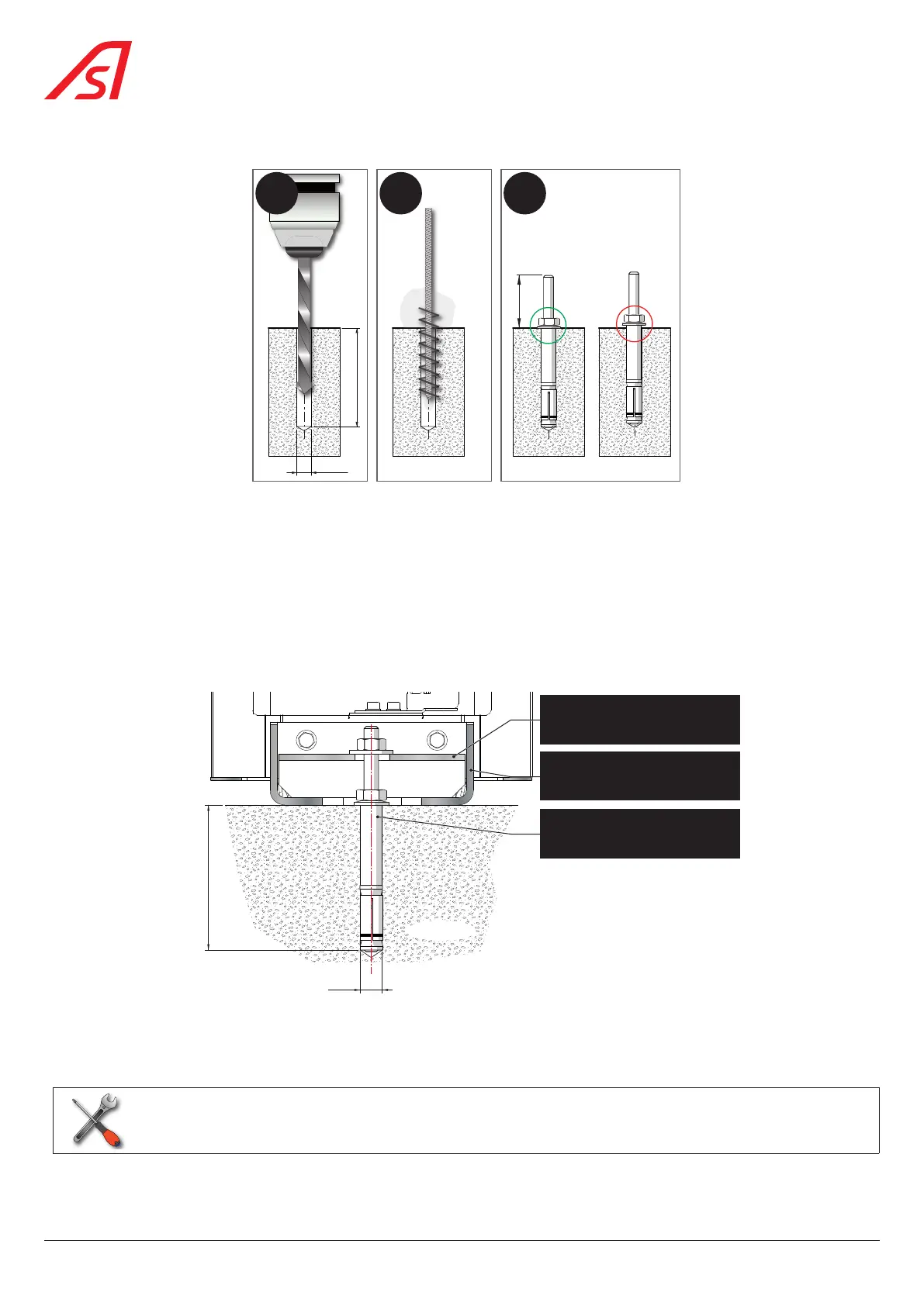 4. Insert into each of the holes an expansion plug, supplied by Automatic Systems, taking care to leave the threaded rod of