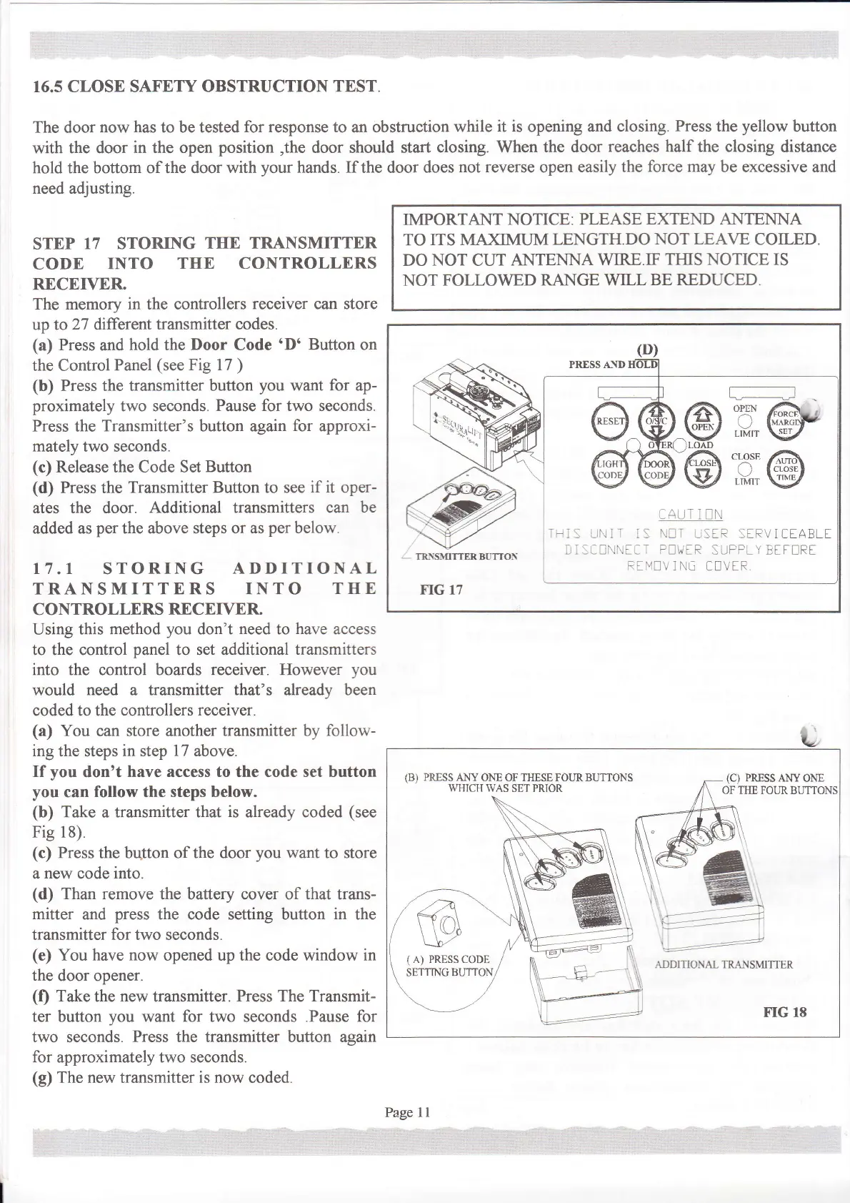 16.5 CLOSE SAFETY OBSTRUCTION