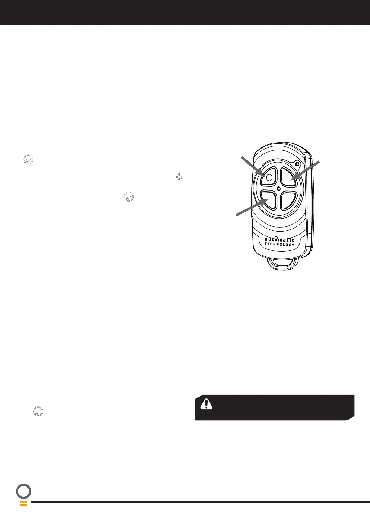 f. Release both buttons. The transmitter button is now coded,