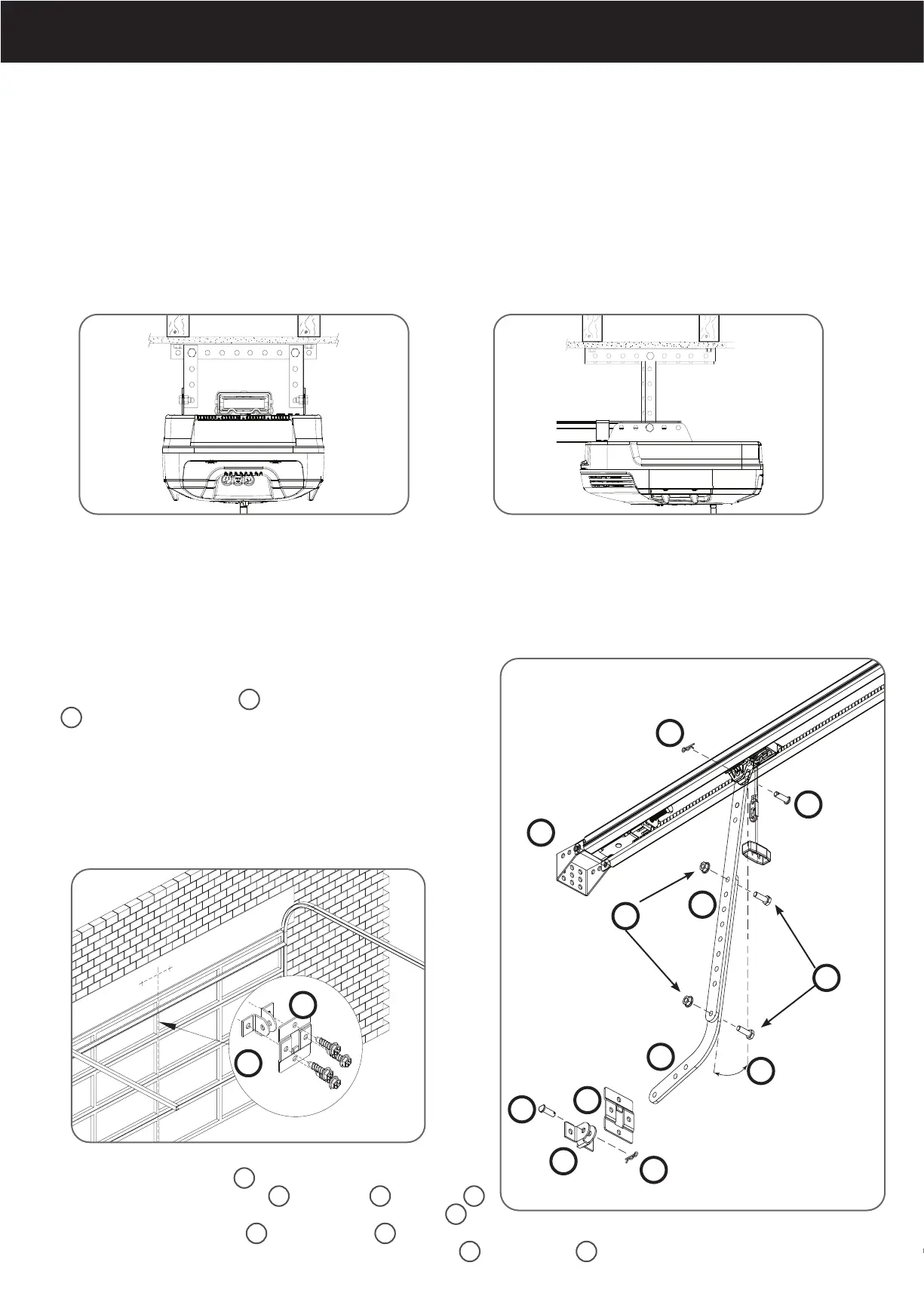 c. Raise the drive unit to the ceiling mounted perforated angle and secure with M8x20mm screws and nuts (not supplied). Strips