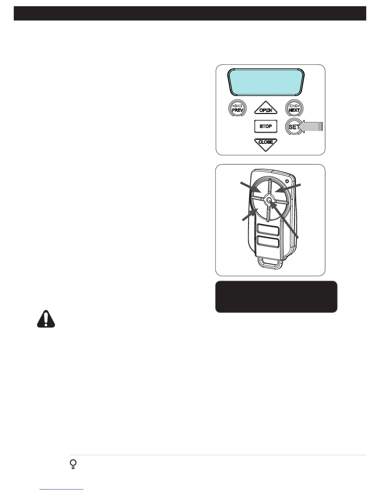the transmitter to store into memory. The Door will now automatically