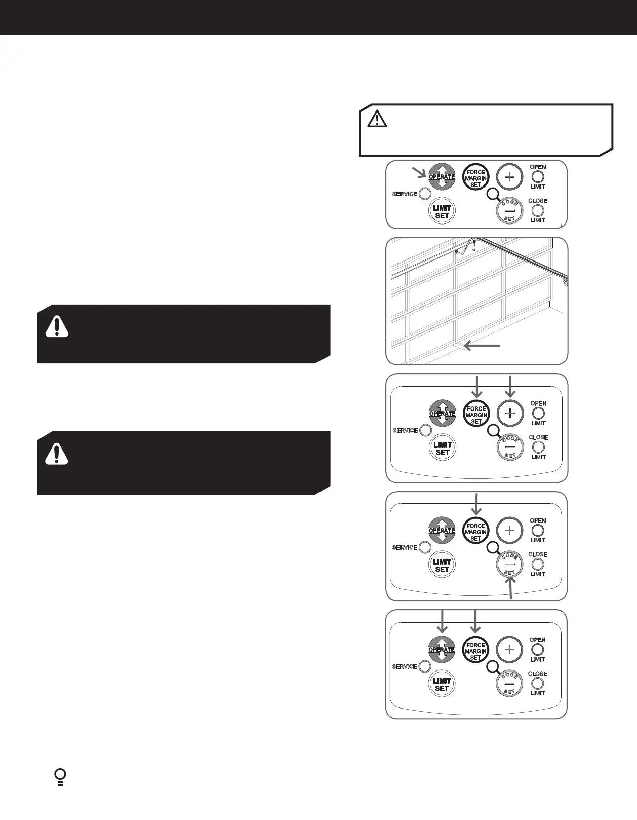 • If the door STOPS but does not reverse, decrease FORCE (refer to Section