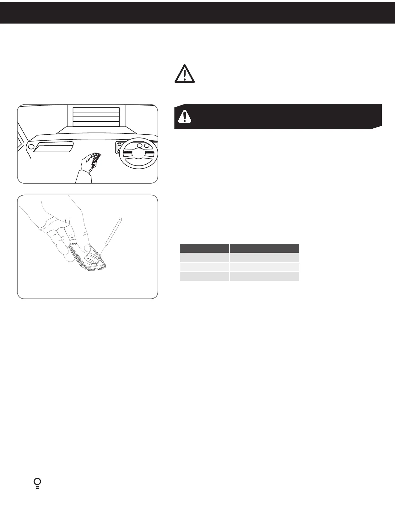 Light Status table to determine if battery needs replacing