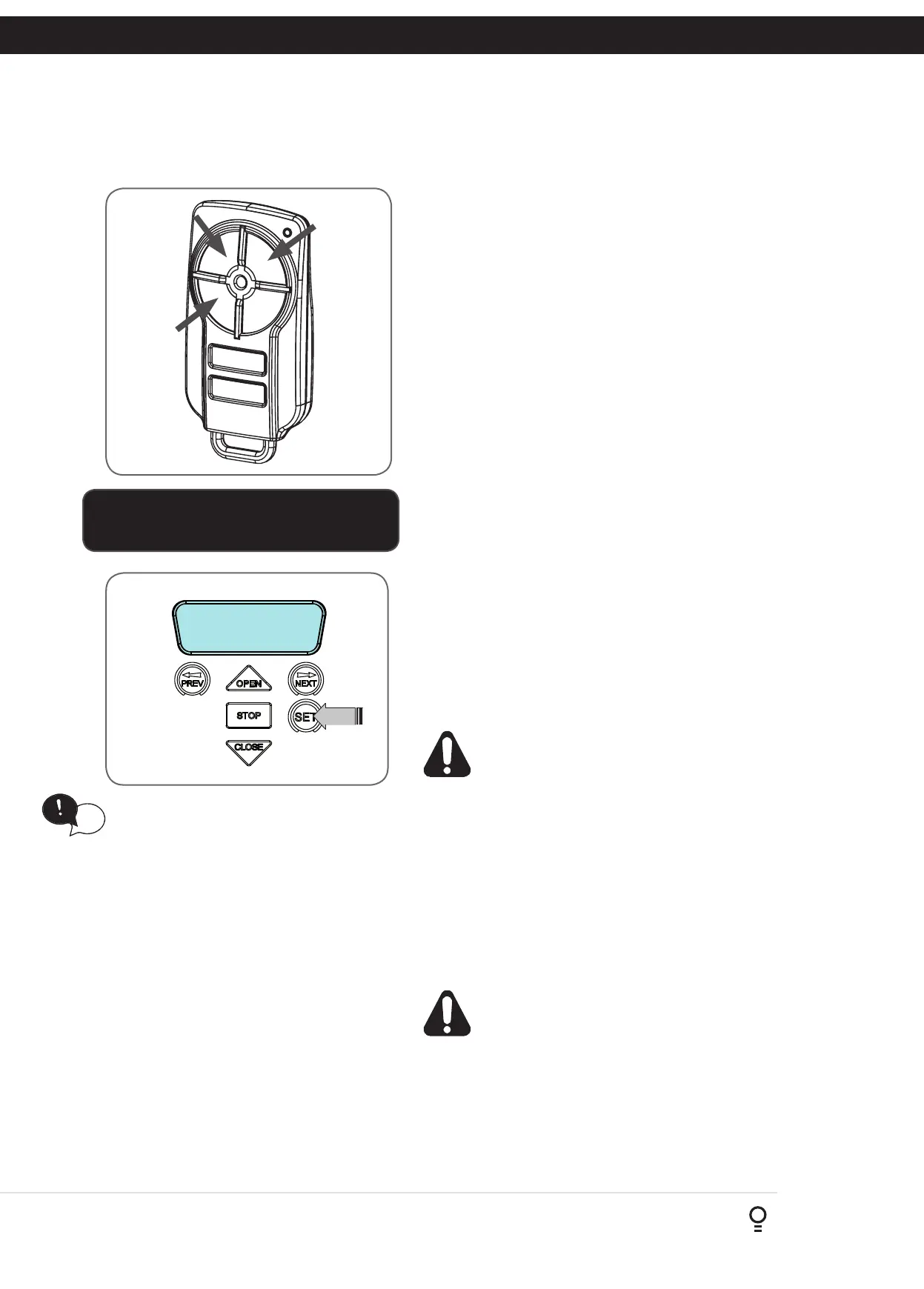 OPEN or CLOSE button on the wall control unit or from the transmitter.